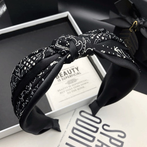 黑色高级感发卡发箍女2025复古印花打结发窟头饰宽边压发洗脸头箍