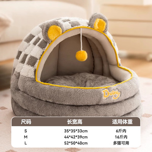 秋冬季保暖加厚半封闭狗窝泰迪小型犬深度睡眠狗屋摇篮猫窝宠物窝