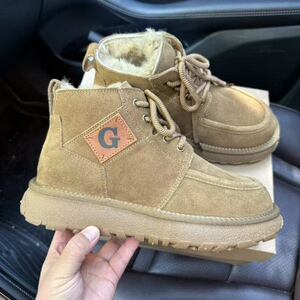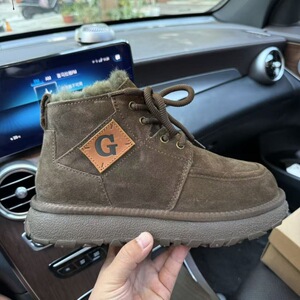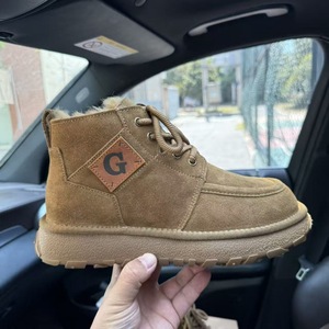2025冬季新款系带男士雪地靴牛皮羊毛鞋保暖加厚加绒