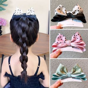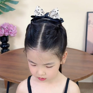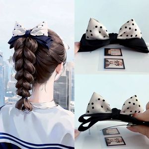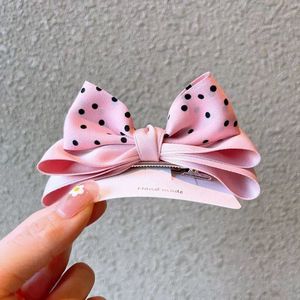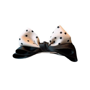 女童新复古波点拼色蝴蝶结发夹气质高级感布艺立体蝴蝶结顶夹发饰
