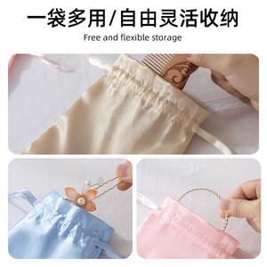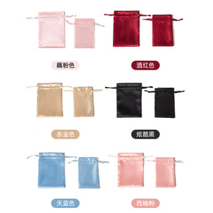 跨境色丁绸缎饰品首饰收纳袋透气防尘护肤品抽绳束口小布袋做LOGO