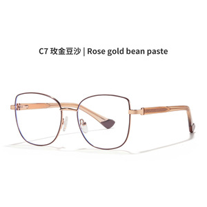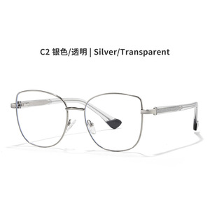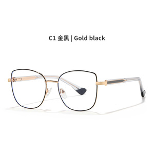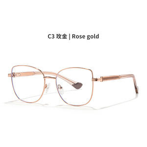 复古猫眼金属防蓝光眼镜 欧美跨境热销女平光镜弹簧插针CP脚68002