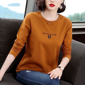 跨境外贸棉质2025春秋季新款韩版长袖t恤女宽松大码女装上衣批发