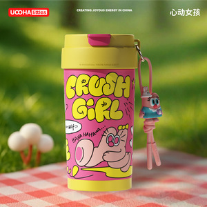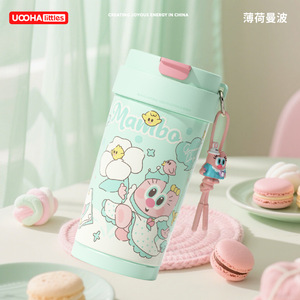 uooha多巴胺咖啡杯外出携带杯子不锈钢水杯吸管保温杯便携保冷杯
