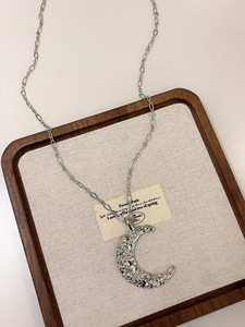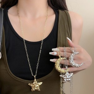 小众设计感金属月亮星星吊坠项链个性时尚长款毛衣链韩系简约颈链