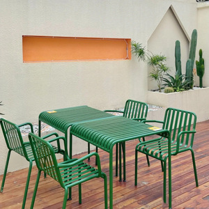 设计师户外铁艺桌椅庭院花园阳台露天咖啡厅外摆铁艺长条桌现代桌