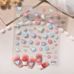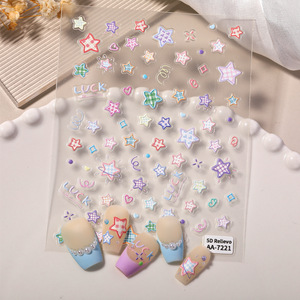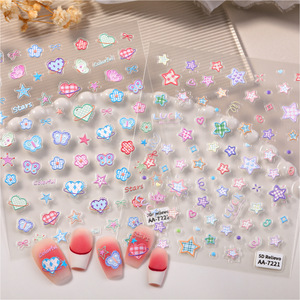 原创爱心星星美甲贴纸5D浮雕立体糖果五角星diy指甲贴纸饰品 AA款