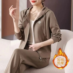 妈妈冬装加绒外套休闲运动服套装中老年女装秋冬季加厚上衣两件套
