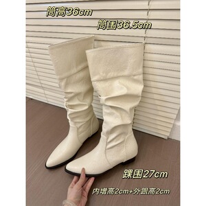 北岛千金!韩版三穿尖头内增高堆堆靴女秋冬褶皱平底长靴