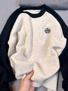 撞色软糯套头毛衣女秋冬慵懒宽松韩系chic别致内搭打底针织衫上衣