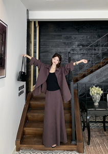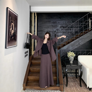 法式复古松驰感polo领长袖衬衫高腰半身裙女2025秋季新款时尚套装