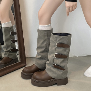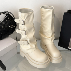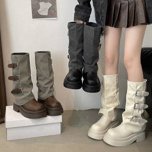 爆款黑色复古英伦风厚底靴子女长筒靴2025新款秋季百搭显瘦骑士靴