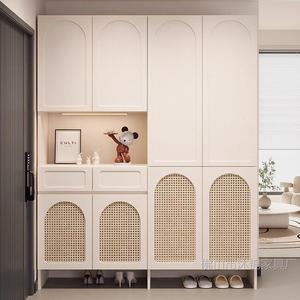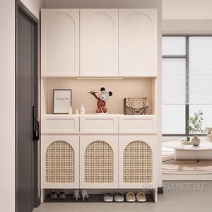 门口家用藤编鞋柜轻奢高级感储物柜一体入户门靠墙高款门厅收纳柜
