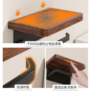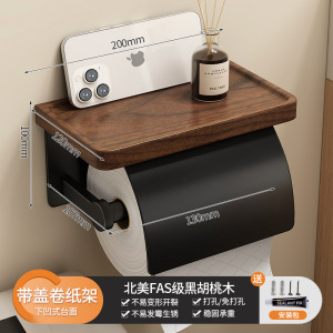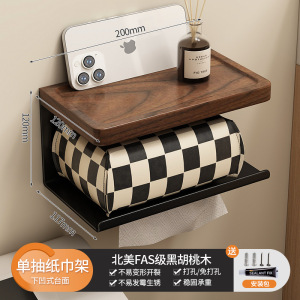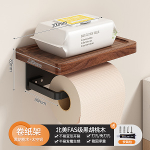 黑胡桃木厕所纸巾盒实木多功能卫生间厕纸盒免打孔置物纸巾架子