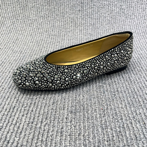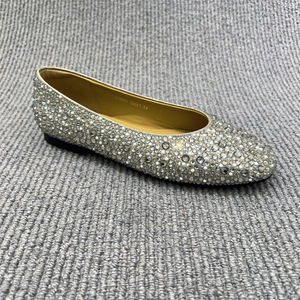 【现货】558秋季新款欧货瓢鞋软皮圆头浅口满钻平底软底女时尚亮