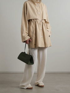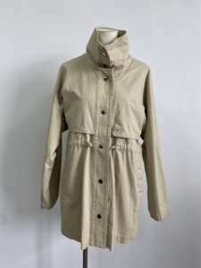 R0*W风卡其色风衣外套女中长款短款宽松上衣 抽绳设计立领短风衣