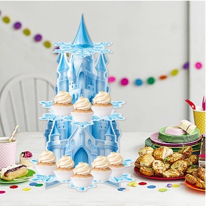 亚马逊冬日冰雪城堡主题蛋糕架 冬天生日派对装饰纸杯蛋糕置物架