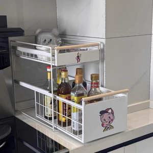 免安装厨房下水槽置物架调料碗碟抽拉式水池收纳架橱柜拉篮分层架