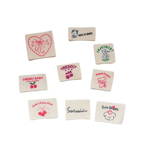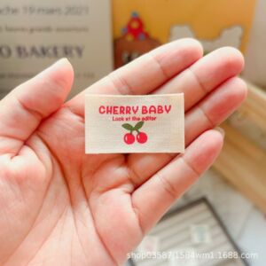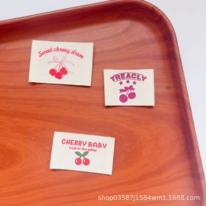 现货纯棉布标服装领标彩色樱桃潮流时尚装饰贴布箱包标签辅料批发