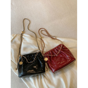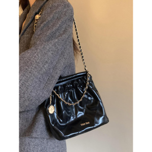 流金派对水桶包包女2025新款褶皱百搭链条单肩斜挎包工厂一件代发