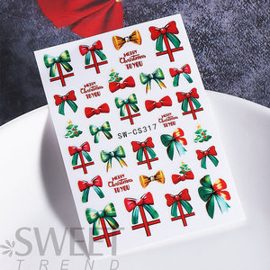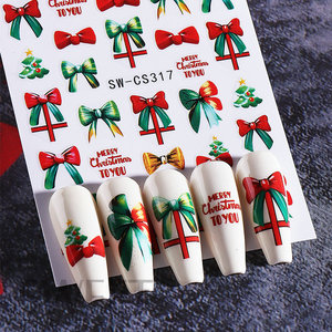 跨境新款圣诞美甲贴纸 ins圣诞树礼物蝴蝶结铃钉灯球3D不干胶贴花