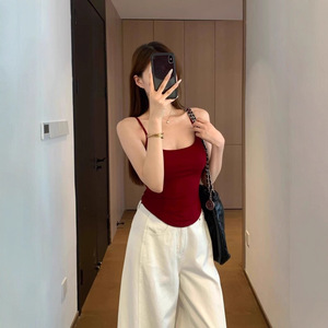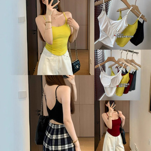 AY94 3D立体模杯胸垫一体超弹力细肩带辣妹蝴蝶结露背吊带背心