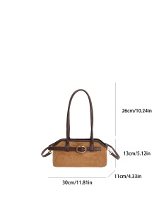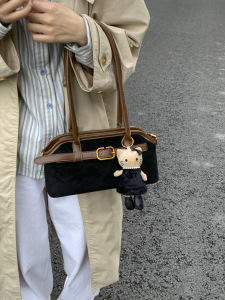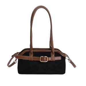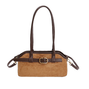 严选2025秋冬磨砂复古手提包女包麂皮绒单肩斜挎包通勤托特包批发
