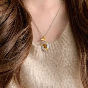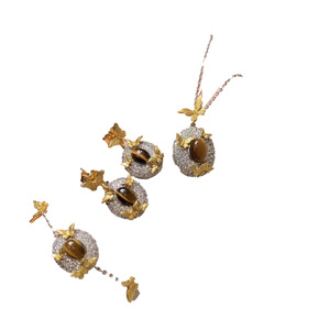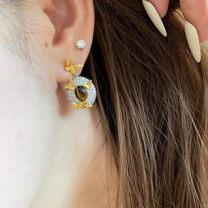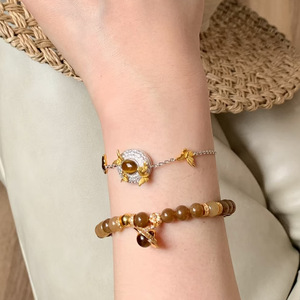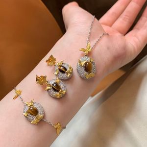 秋冬显白S925银金蝶虎眼项链手链女复古风椭圆造型个性百搭耳钉