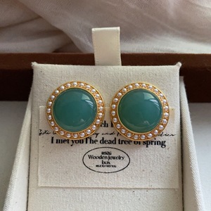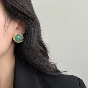 圆形树脂镶嵌珍珠耳钉耳环2025中古气质耳饰优雅温柔奢华复古耳钉