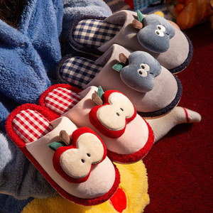 苹果棉拖鞋女秋冬季新款情侣居家毛绒保暖防滑卡通毛毛地板拖鞋男