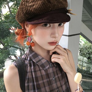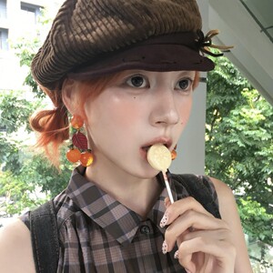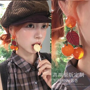 小众设计感橘色树叶樱桃耳环夏日多巴胺度假风耳钉甜美可爱耳饰女
