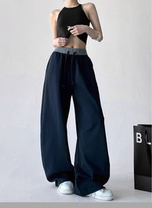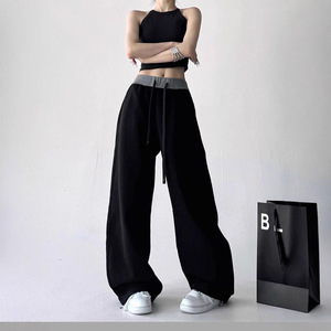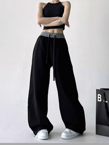 2025秋高级感拼色抽绳运动裤女宽松显瘦弯刀裤卫裤休闲遮肉阔腿裤