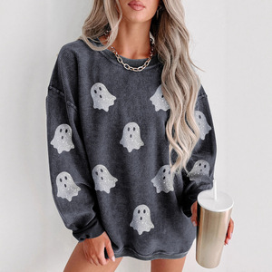 跨境oversize上衣女欧美春秋时尚女装3D数码印花长袖宽松圆领卫衣