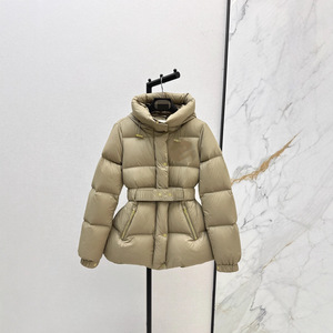 时尚高版本女士白鹅绒外套气质通勤显瘦保暖松紧腰腰带连帽羽绒服