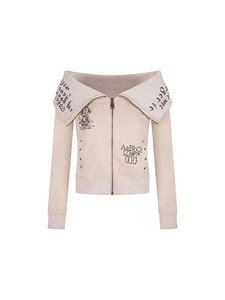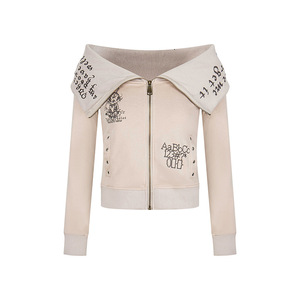 大翻领一字肩美式复古字母印花卫衣外套女2025年秋季新款辣妹上衣