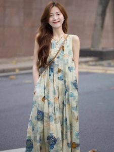水墨画背心裙【单裙】【清冷松弛感穿搭/早秋装搭配一整套2024韩剧女主穿搭/梨型身材穿搭/茶系一整套