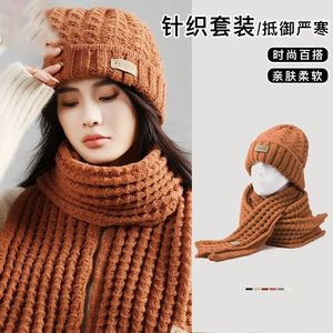 冬季帽子女冬围巾套装韩版潮保暖针织单层保暖百搭英伦毛线帽防风