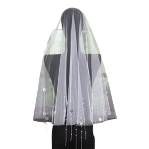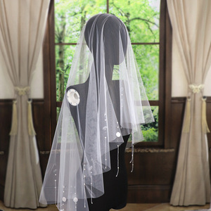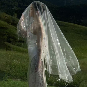 新款流苏新娘头饰婚纱超仙森系亮片网红拍照道具中长款结婚头纱
