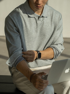 老钱风液态空气棉半开POLO卫衣男2025秋季新透气抗皱休闲长袖T恤