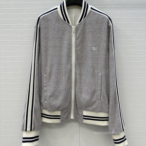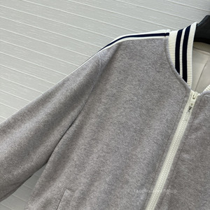浅灰色丝绒夹克外套 休闲运动风宽松百搭长袖拉链开衫秋 BW82153