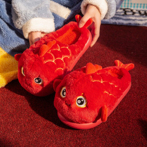 锦鲤棉拖鞋女款2025新款室内居家居防滑保暖毛绒毛拖鞋冬天棉拖女