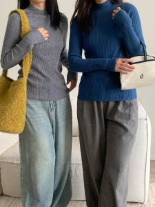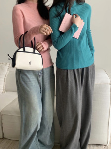 秋冬新款圆领慵懒舒适长袖上衣韩版针织衫毛衣打底衫女纯色