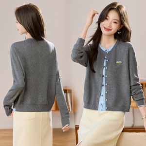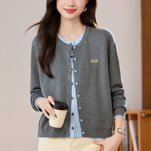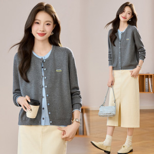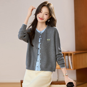 潮流假两件外套女开衫2025新款春秋季针织衫外搭上衣漂亮减龄毛衣