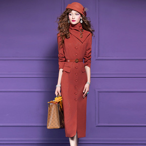 菲梦伊原创设计感连衣裙女秋季新款高端优雅收腰职业开叉风衣外套