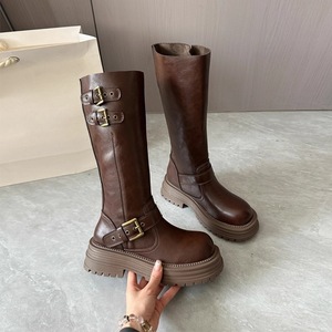 棕色靴子美拉德长筒靴女2025新款秋季复古西部牛仔厚底高筒骑士靴