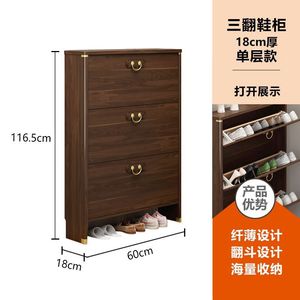 新中式超薄翻斗鞋柜实木框色家用门口入户靠墙玄关柜小户型窄鞋架