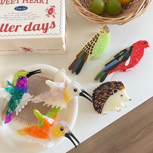 新款彩色蜂鸟发夹可爱小鸟系列鹦鹉造型醋酸抓夹半扎发盘发鲨鱼夹