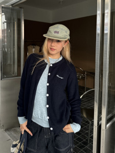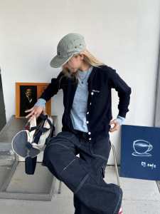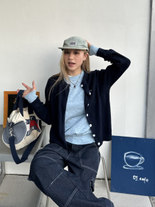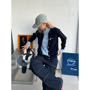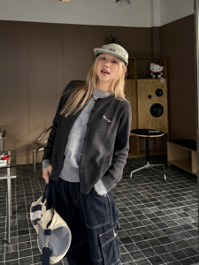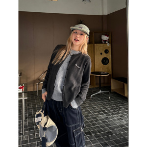 川川也美式原创秋季新款假两件针织圆领毛衣女街头复古慵懒风上衣