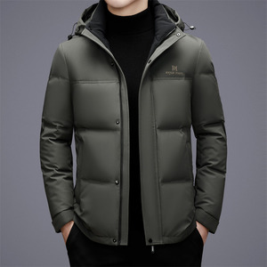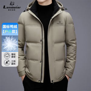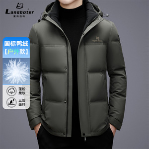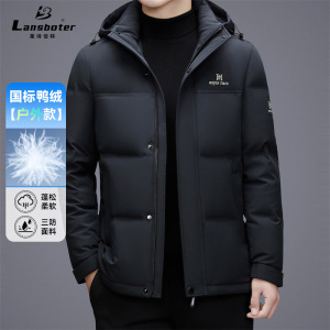 莱诗伯特冬季新款加厚中长羽绒服男士白鸭绒防寒休闲连帽羽绒服男