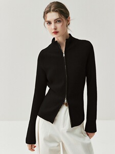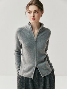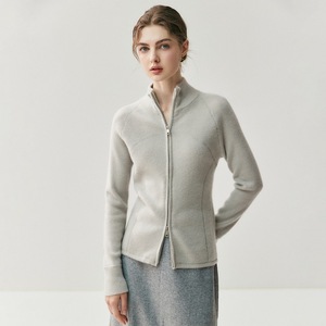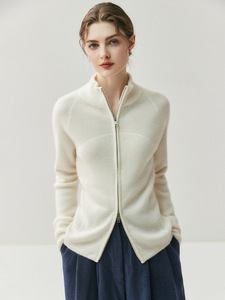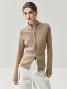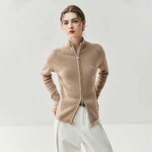 轻奢云朵般柔软亲肤女士立领拉链羊绒开衫简约纯色显瘦针织外套